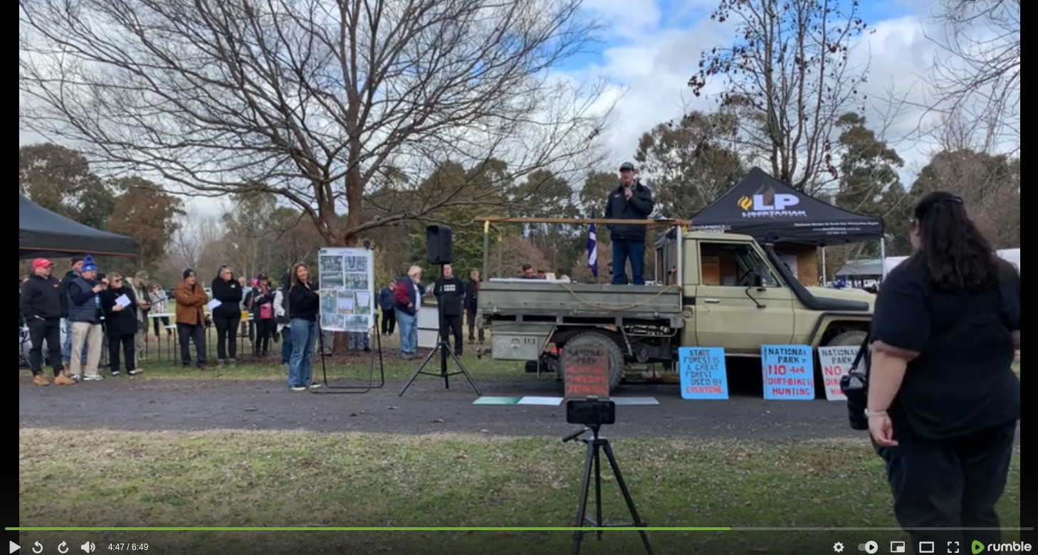 2024-07-13 – Wade speaking at the Great Forest National Park Rally at Mansfield, Victoria, Australia